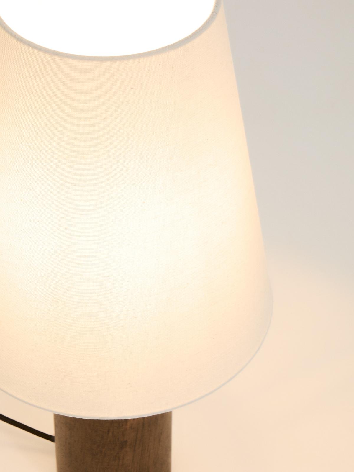 Deze staande lamp combineert de warmte van massief rubberhout met de zachtheid van een katoenen kap in een elegante ivoorkleur. De robuuste basis met eenvoudige lijnen, biedt stevigheid en karakter, terwijl elke uitvoering uniek en exclusief is dankzij de nerven en knoesten van het hout. Het ontwerp is bedoeld om moeiteloos op te gaan in woonkamers, slaapkamers of leeshoeken en biedt zachte, omhullende verlichting. Compatibel met E27-lamp van max. 40 W (niet inbegrepen). Een lamp die het verschil maakt door zijn duurzaamheid en veelzijdigheid.