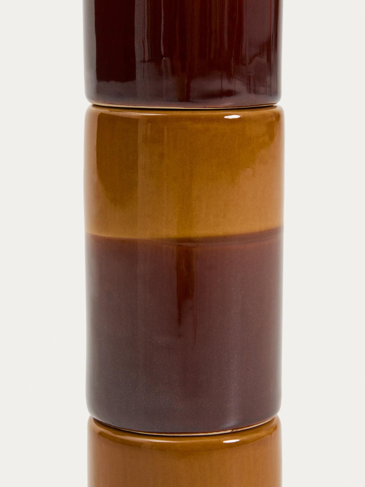 Mavran tafellamp met keramieken voet in bruin en mosterdgeel en lampenkap van katoen is toegevoegd aan je winkelmandje