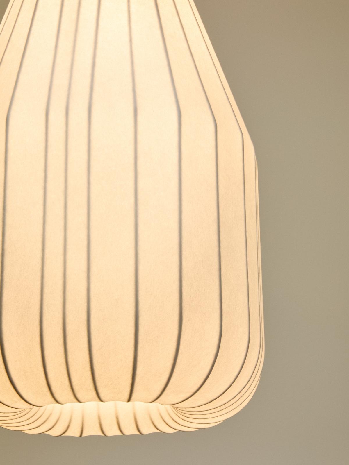Deze collectie plafondlampen valt op door het innovatieve ontwerp, waarbij de lampenkap is gemaakt van synthetische vezels die op een frame van roterende stalen staven zijn gespoten. Het resultaat is een geometrisch volume dat moderniteit uitstraalt en tegelijkertijd een subtiele klassieke sfeer oproept, perfect om te integreren in alle soorten omgevingen. De combinatie van materialen en productietechnieken zorgt voor een zachte en delicate verlichting die in elke kamer een gezellige en omhullende sfeer creëert. De bekabeling heeft een zachte en flexibele buitenlaag, ontworpen om knoopvorming te voorkomen en dagelijks gebruik te vergemakkelijken. Compatibel met E27-lampen tot 40 W (niet inbegrepen). Een product dat is ontworpen voor diegenen die op zoek zijn naar een onderscheidend en functioneel detail in de verlichting van hun huis of professionele ruimte.