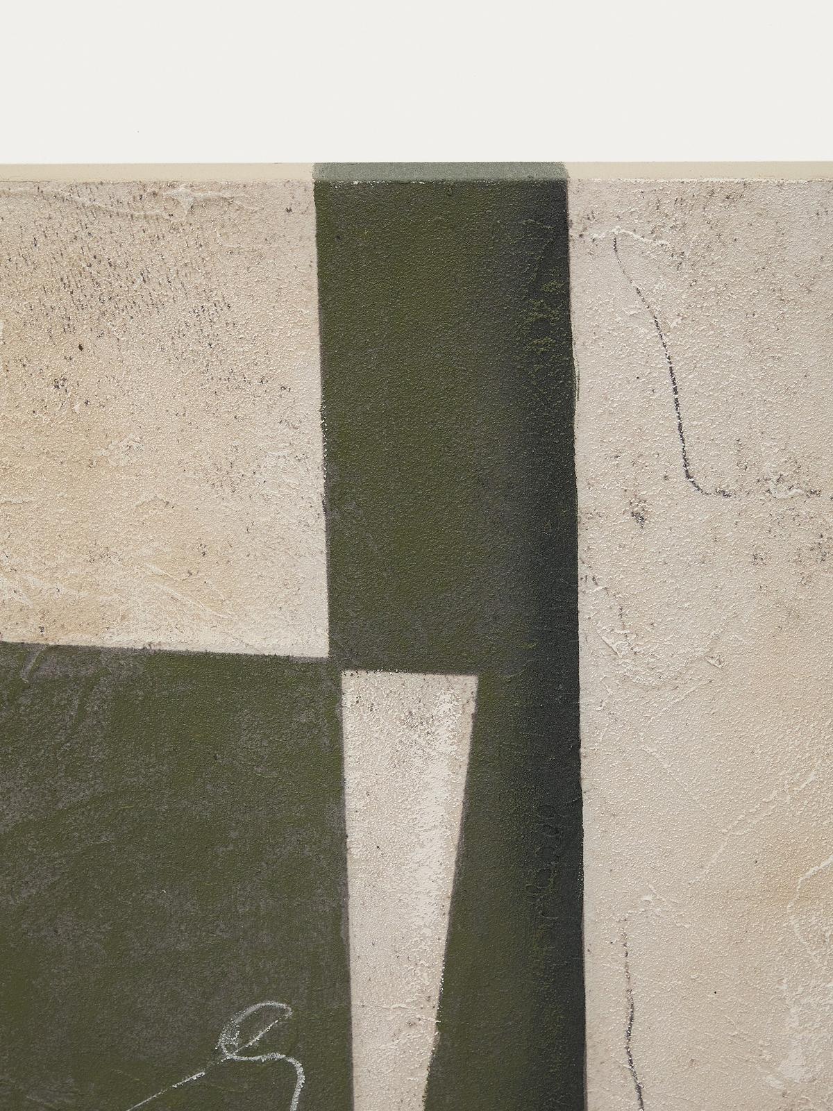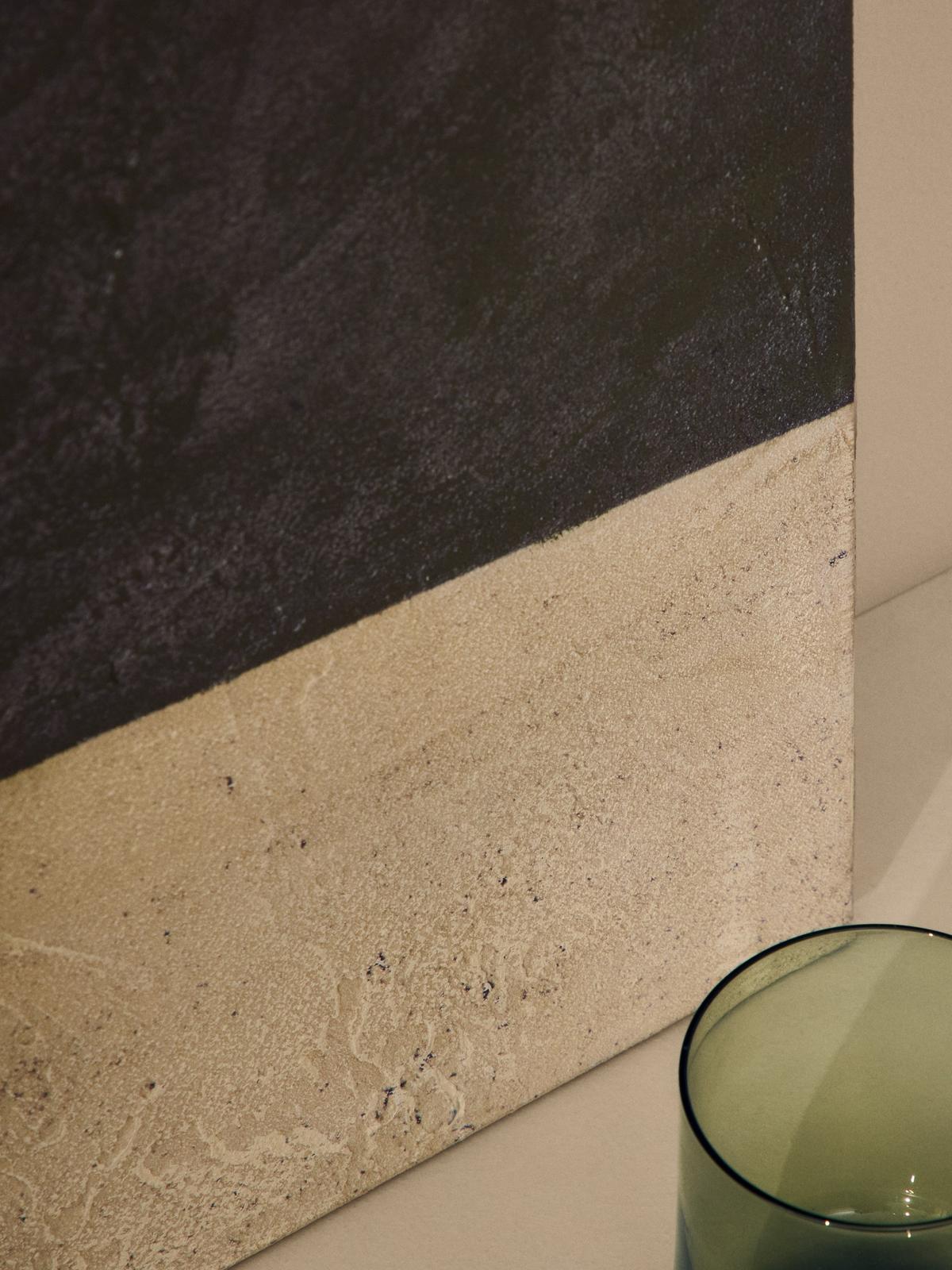 Fida voegt een vleugje kleur toe aan je kamers. Het ontwerp combineert geometrische vlakken gevormd door overlappende organische penseelstreken met een getextureerde achtergrond die een verweerd effect creëert.
