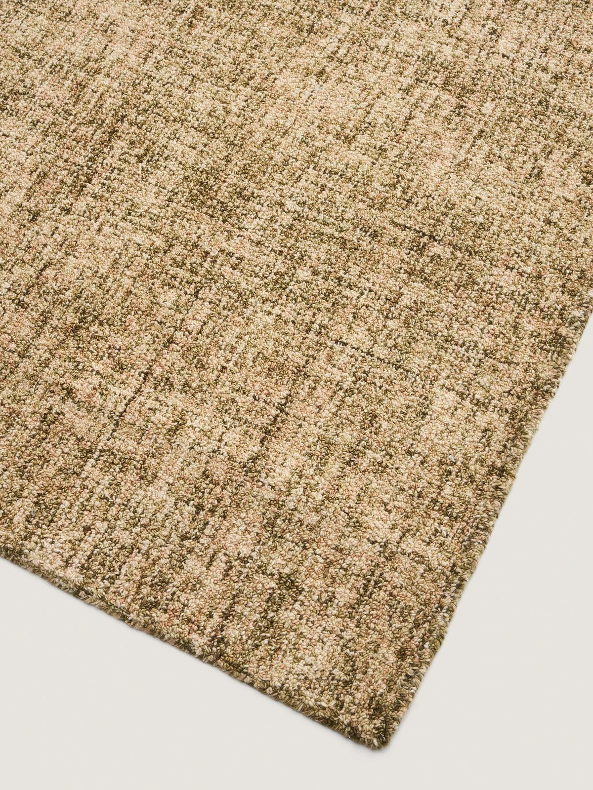 Dit tapijt valt op door zijn mini bouclé oppervlak, dat textuur en volume toevoegt aan elke omgeving en een gezellige en elegante visuele basis creëert. Het is gemaakt van een wolmix die warmte en zachtheid onder de voeten biedt en bestand is tegen dagelijks gebruik. Elk stuk is met de hand geweven, waardoor elk tapijt een exclusieve creatie is, met kleine variaties die het uniek maken. Wol kan tijdens de eerste maanden een hoeveelheid vezels afgeven. Om het uiterlijk te behouden, raden we aan regelmatig te stofzuigen in de richting van de vezel en eventuele losse draadjes af te knippen met een schaar.