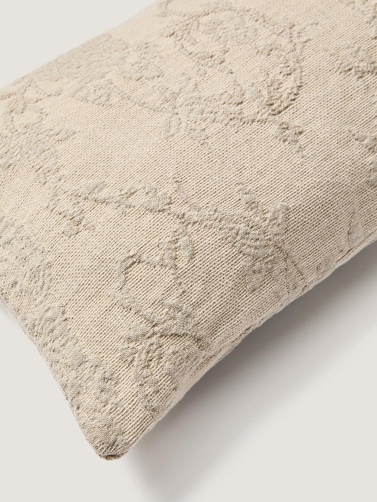 Velina kussenhoes van gewassen linnen jacquard met bloemen in beige 30 x 50 cm