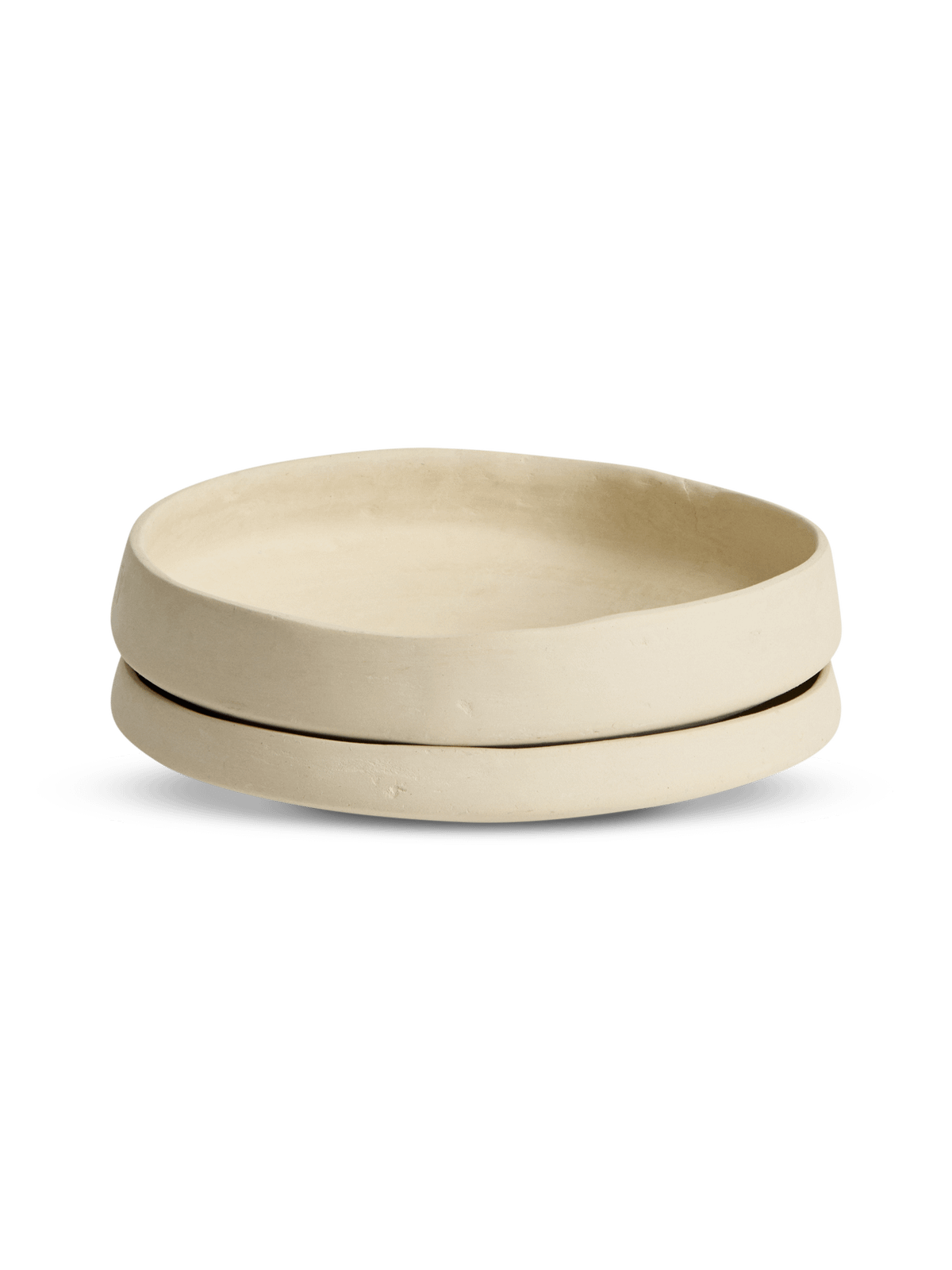 Mireni is een collectie van papier-maché met zachte onregelmatigheden en subtiele kleurnuances. De textuur en dikte van het materiaal zorgen voor visuele lichtheid en een bijzondere uitstraling, waardoor elke schaal een uniek decoratief object wordt. Dankzij de natuurlijke eigenschappen van het materiaal heeft elk stuk zijn eigen tinten en subtiele variaties die de exclusiviteit versterken.
