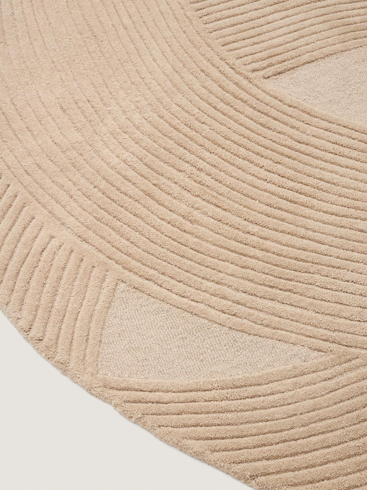 Domm is een handgemaakt stuk dat de zachtheid van witte wol combineert met een jacquardontwerp om een vleugje elegantie aan je ruimtes toe te voegen.