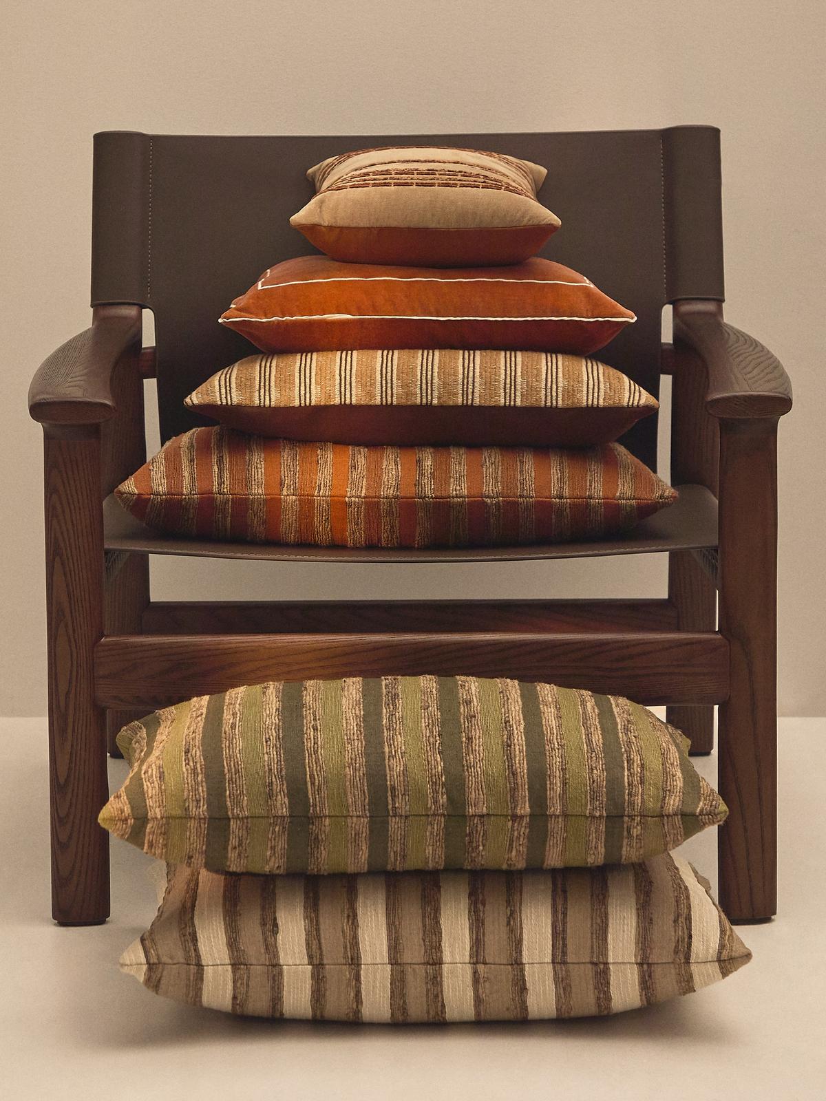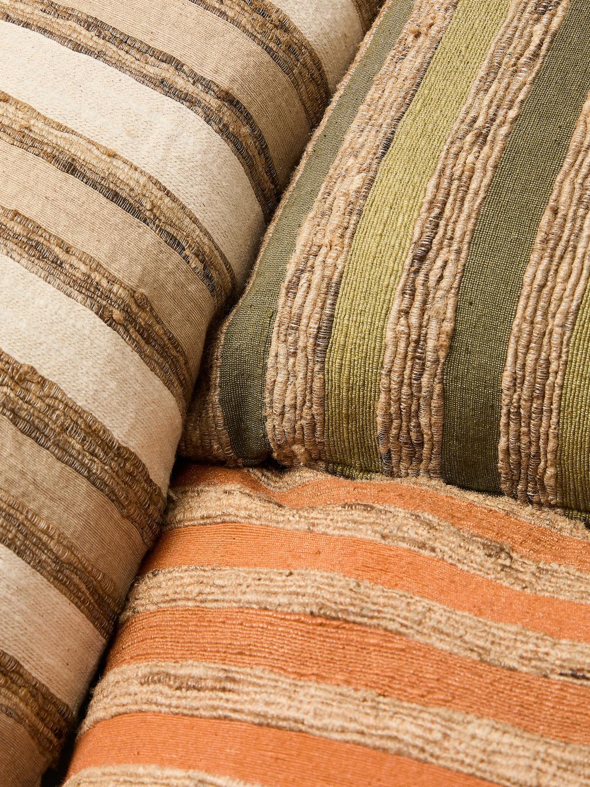 Deze kussenhoes is gemaakt van een exclusieve hoogwaardige zijdemix, geselecteerd om zijn unieke zachtheid en hoge weerstand, perfect voor dagelijks gebruik. De hypoallergene eigenschappen maken het een ideale keuze voor wie op zoek is naar comfort en welzijn in elk detail van het huis. Het ontwerp heeft een gestreept jacquardpatroon voor een geraffineerde en tijdloze look. Elk product wordt met de hand gemaakt op traditionele weefgetouwen, waardoor aandacht voor detail en een onberispelijke afwerking gegarandeerd zijn.