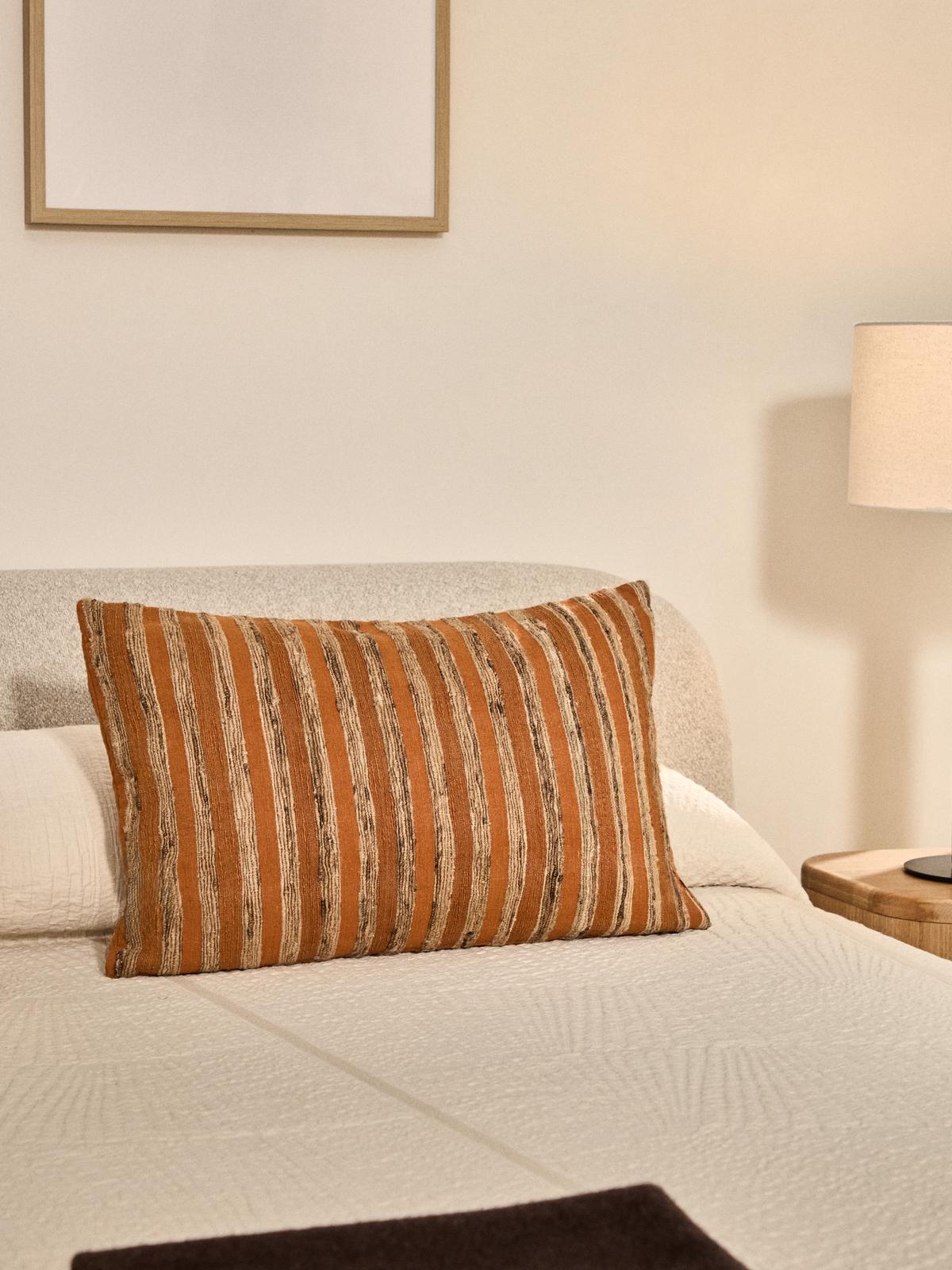 Dorevi jacquard kussenhoes van zijdemix met oranje strepen 40 x 60 cm