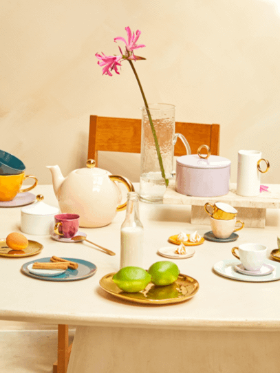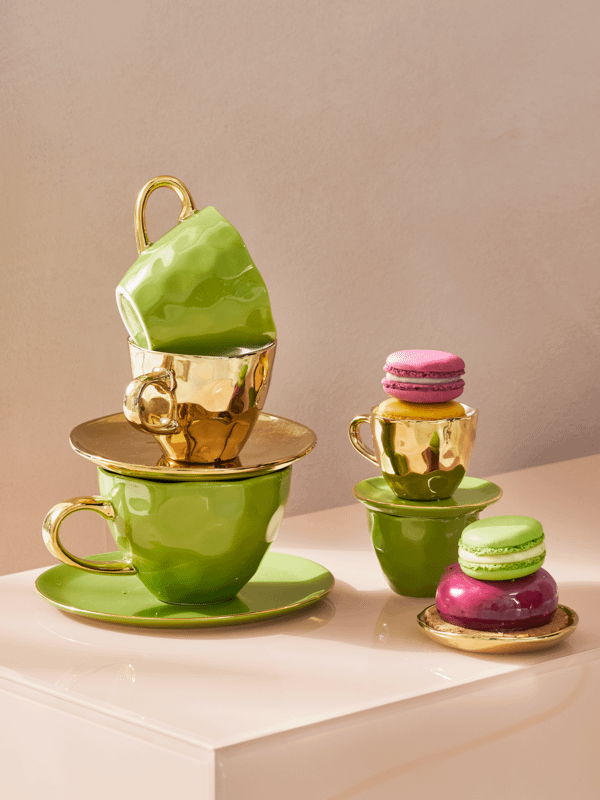 Het Good Morning bord in goud brengt een vleugje luxe aan elke tafel. De onregelmatige vorm geeft dit bord een handgemaakt karakter, terwijl de glanzende afwerking het licht prachtig weerkaatst. Ideaal als ontbijtbord, gebaksbord of decoratief accent – dit stijlvolle stuk maakt van elk moment een beetje bijzonder.