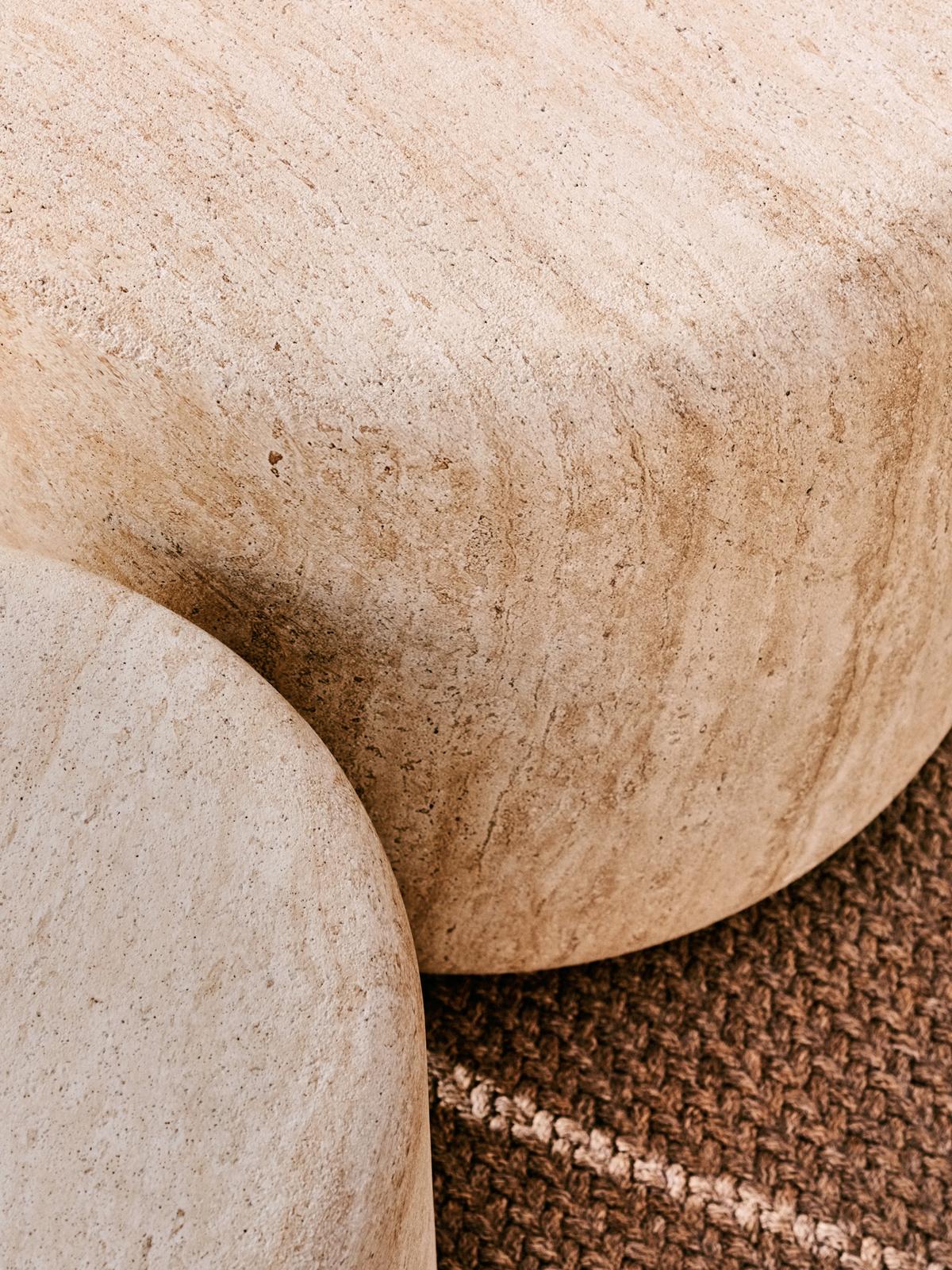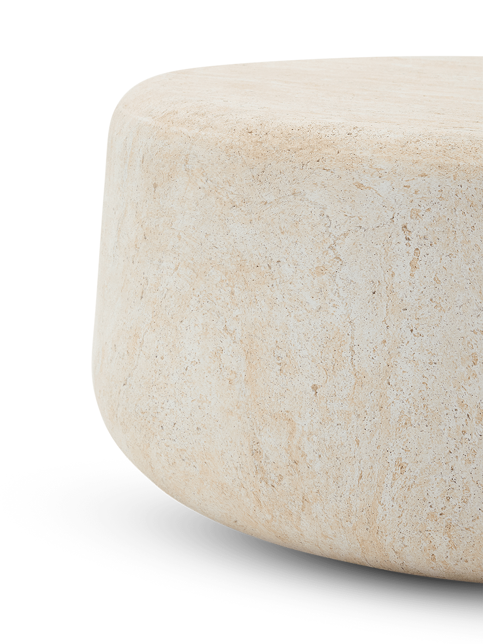 Drasi salontafel van cement met afwerking van travertijneffect ⌀90 cm
