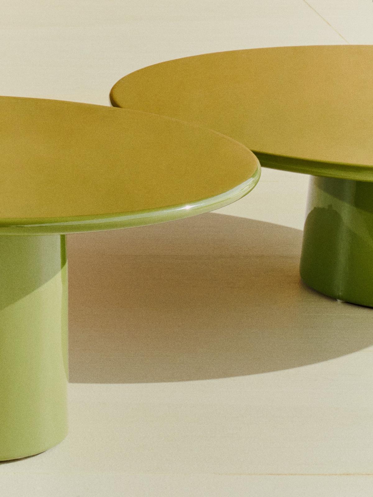 Albanella salontafel van cement met glanzend groene afwerking ⌀85 cm