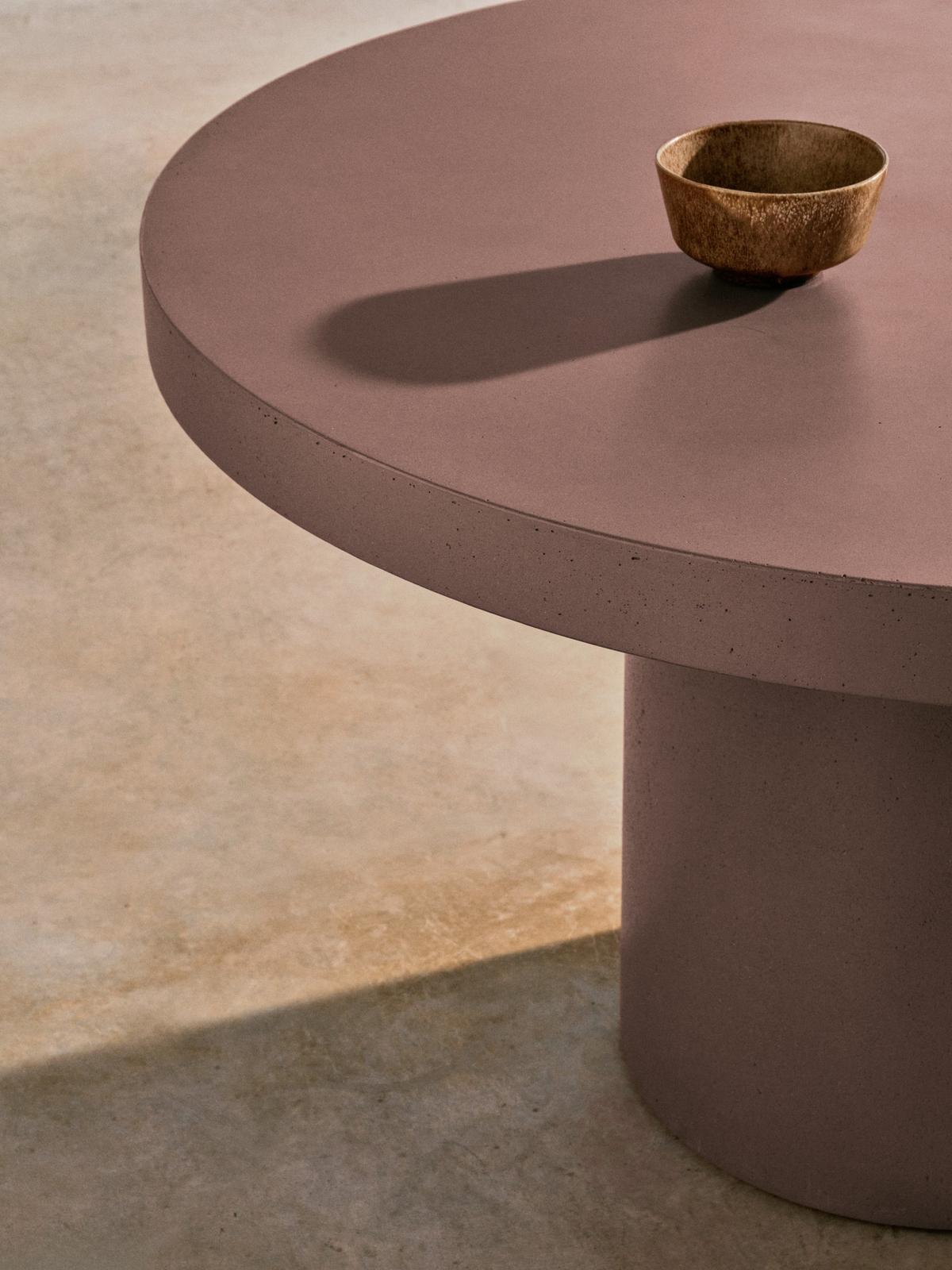 De Aiguablava collectie combineert functionaliteit en design op zijn best. Geïnspireerd door de puurheid van het minimalisme en met eenvoudige lijnen wordt dit meubel de ziel van elke omgeving en zorgt het zowel binnen als buiten voor een unieke persoonlijkheid. Gemaakt van GFRC (glasvezelversterkt beton), een materiaal dat zich onderscheidt door weerbestendigheid, lichtheid en duurzaamheid. Deze tafel is ontworpen om jarenlang dezelfde charme te behouden als op de eerste dag. Elke Aiguablava tafel is een exclusief element dankzij de unieke tinten, texturen en porositeiten die ontstaan tijdens de productie. De getextureerde afwerking met een glazuur dat de kleur versterkt en de nerven van het beton onthult, maakt van deze tafel een functioneel kunstwerk. Bovendien is de pigmentatie geïntegreerd in het mengsel, waardoor een diepe kleur wordt gegarandeerd die bestand is tegen de tand des tijds, en wordt slijtage van het oppervlak, zoals bij andere technieken, vermeden. Kleine onregelmatigheden, zoals microscheurtjes of zichtbare poriën op de randen en de basis, maken deel uit van de esthetische taal van het beton en hebben geen invloed op de integriteit van het product. Om het uiterlijk te behouden, wordt aangeraden om hem in de herfst en winter te beschermen met een waterdichte laag en twee keer per jaar Sterina steenbeschermer aan te brengen.
