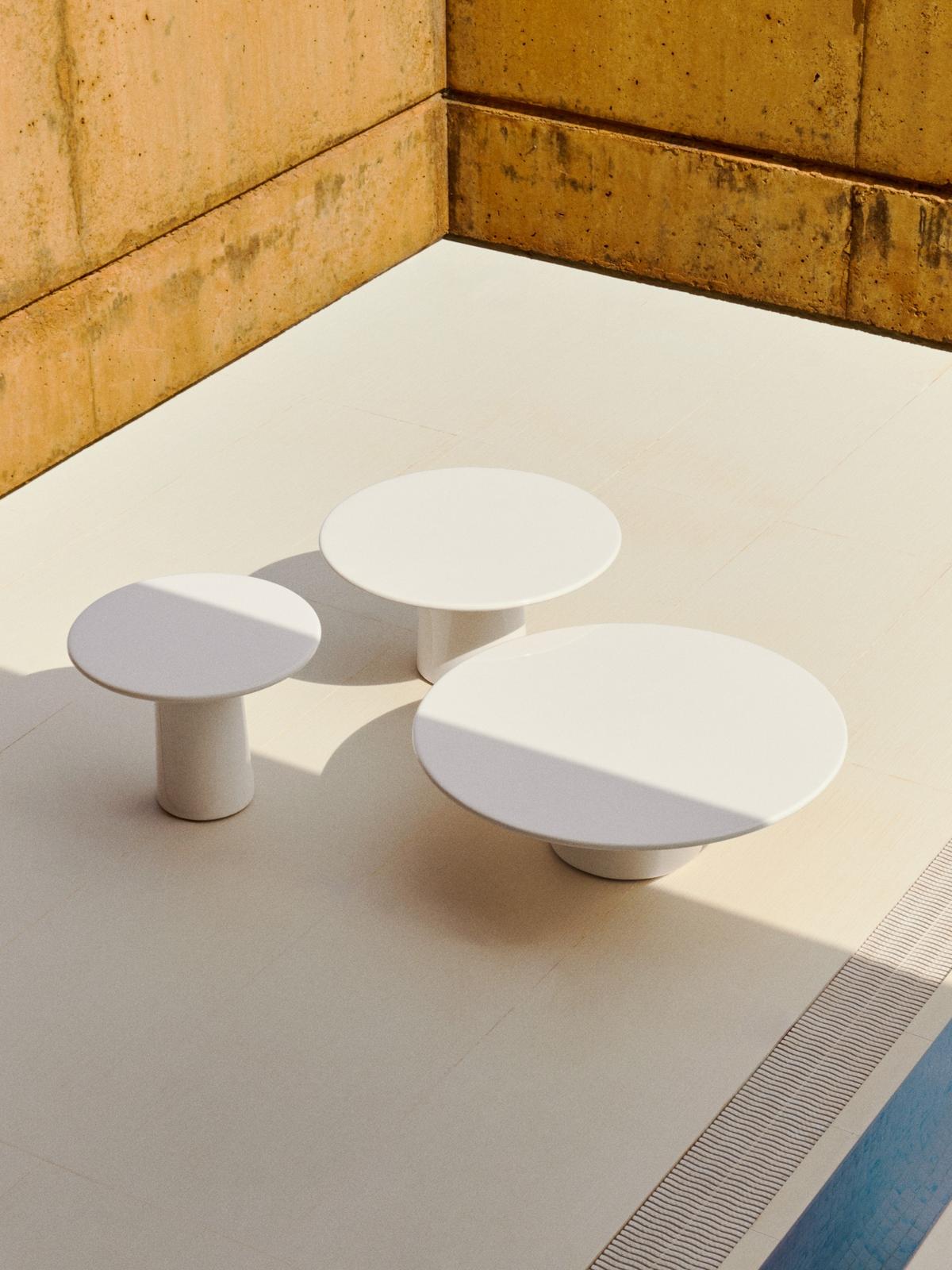 Albanella salontafel van cement met glanzend witte afwerking ⌀65 cm