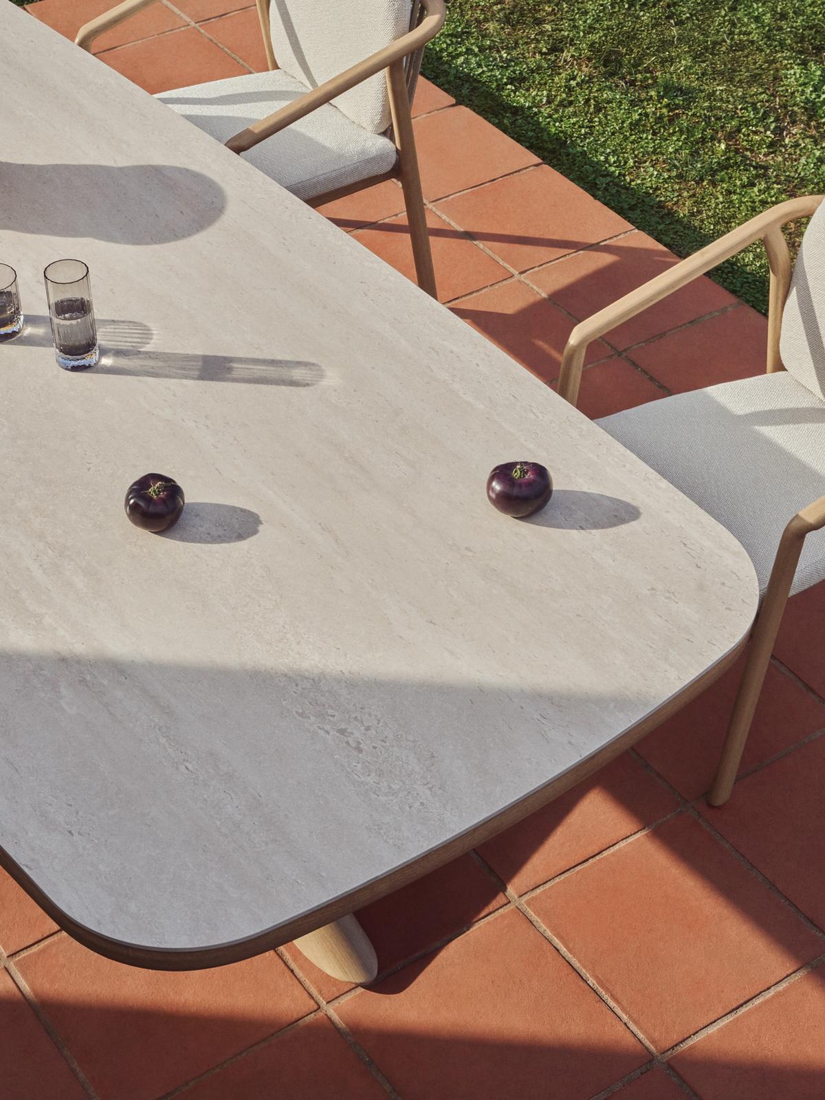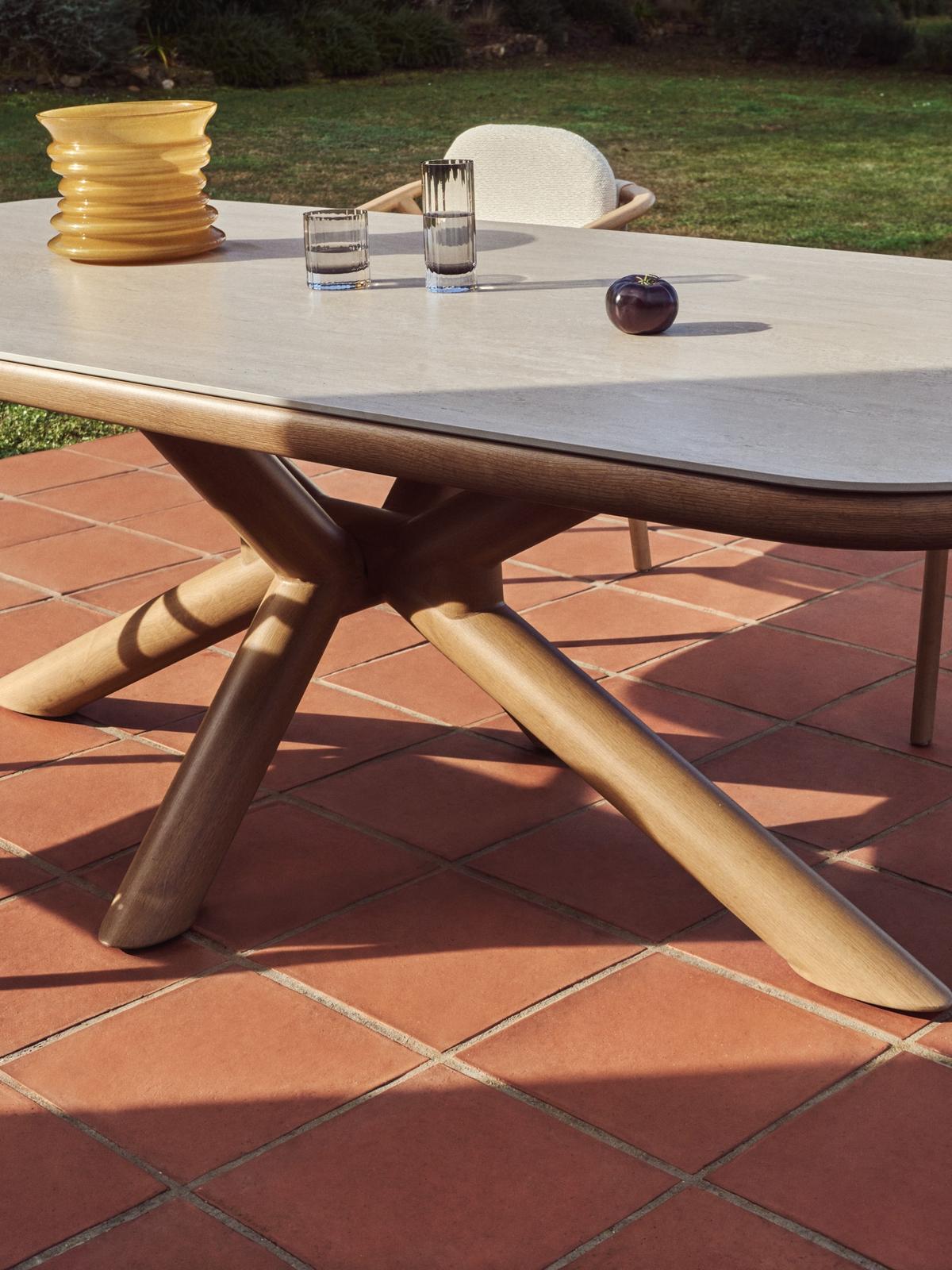 De Mirtia tuintafel van Kave Home is de perfecte keuze voor wie graag uitgebreid tafelt. Dankzij haar ruime lengte biedt deze tafel voldoende plaats voor gezellige diners met familie en vrienden. Het design met afgeronde hoeken en warme houttinten zorgt voor een harmonieuze uitstraling die moeiteloos past in elke tuin of op elk terras.