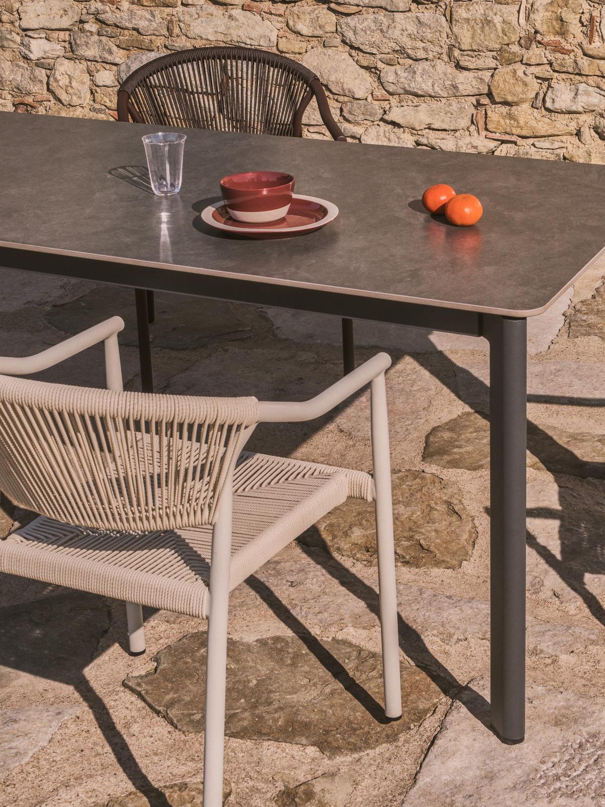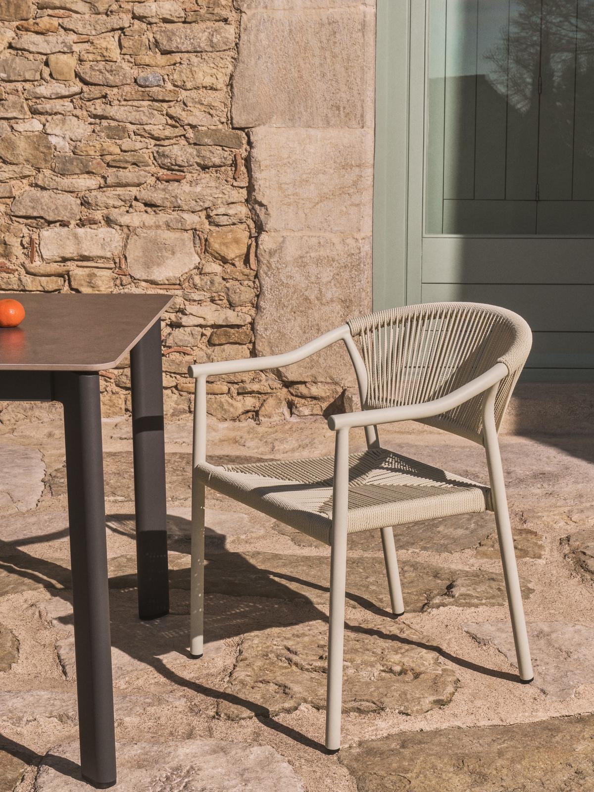 De structuur van de stoel is vervaardigd uit aluminium, wat zorgt voor een sterke maar lichte constructie. Hierdoor is de stoel eenvoudig te verplaatsen en tegelijk bijzonder duurzaam. De afwerking beschermt tegen roest, corrosie en UV-straling, waardoor de stoel zijn mooie uitstraling behoudt, zelfs bij intensief buitengebruik.