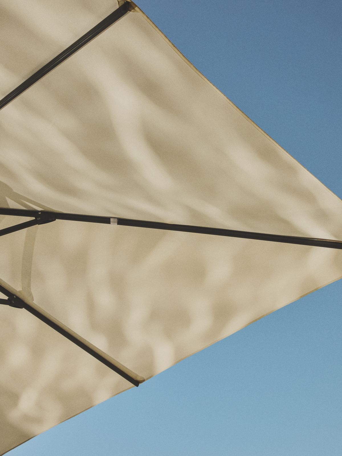 De Nol parasol van Kave Home is de ideale oplossing om optimaal te genieten van je terras of tuin, zelfs op de warmste dagen. Dankzij het kantelbare ontwerp met zijarm creëer je een ruime schaduwzone zonder dat een centrale paal in de weg staat. De combinatie van beige doek en taupekleurige structuur zorgt voor een stijlvolle, rustige uitstraling.