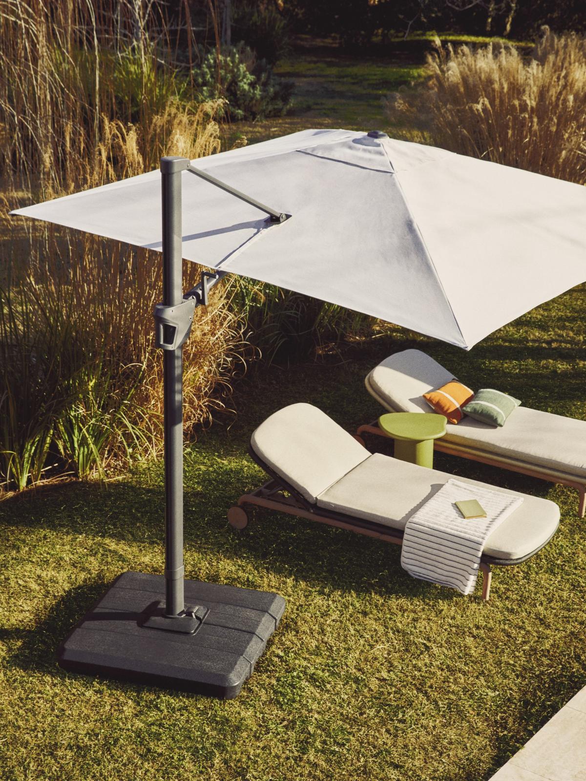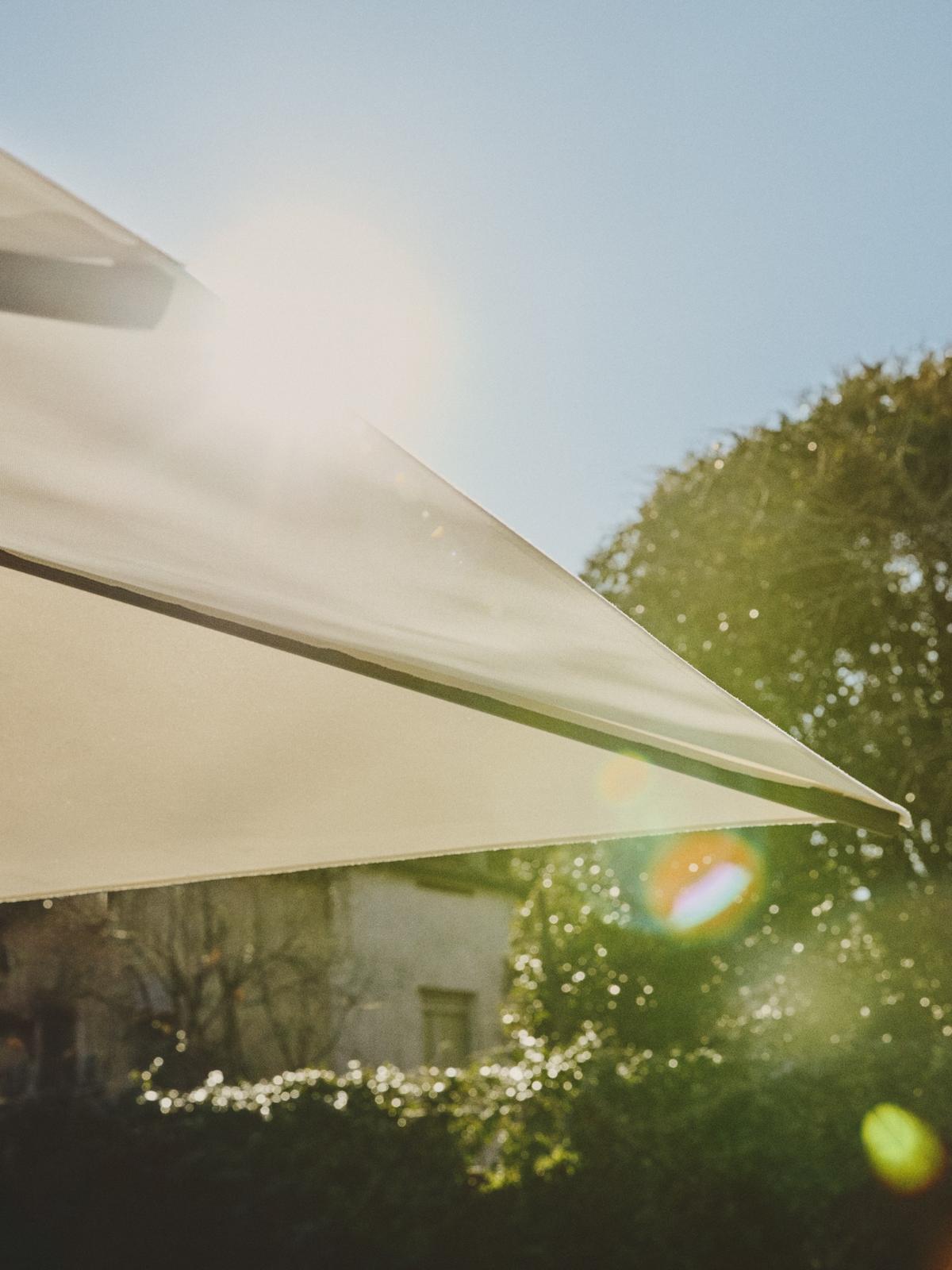 Deze parasol is ontworpen met comfort en flexibiliteit in gedachten. Met het handige handslingersysteem open en sluit je de parasol moeiteloos, terwijl je hem ook eenvoudig tot 90° kan kantelen. Daarnaast is de parasol 360° draaibaar, zodat je op elk moment van de dag de perfecte schaduwpositie kan instellen zonder de hele opstelling te verplaatsen.