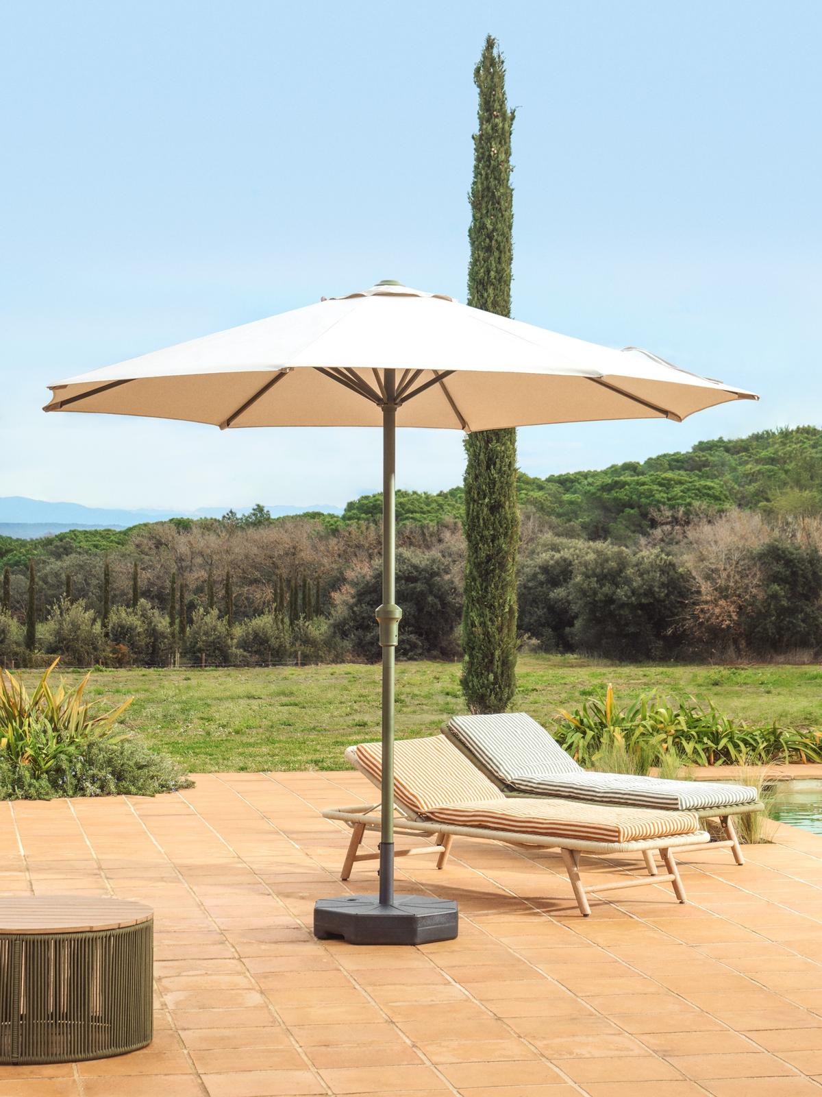 De Milna parasol van Kave Home is een stijlvolle en praktische toevoeging aan elk terras of elke tuin. De combinatie van het beige doek met de centrale groene paal geeft deze parasol een zachte, natuurlijke uitstraling die mooi opgaat in een buitenomgeving. Parasol Milna creëert een aangename schaduwplek waar je volop kan genieten van zonnige dagen, van een rustig koffiemoment tot lange maaltijden in openlucht.