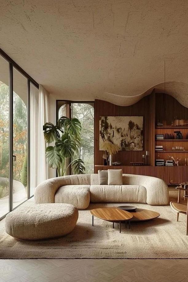 Onze hersenen reageren instinctief positief op gebogen lijnen. Ronden vormen doen denken aan natuur: een kiezelsteen, de boog van een blad, een kabbelende rivier,... Ze geven ons een gevoel van veiligheid en harmonie. Psychologisch gezien ervaren we vloeiende vormen als vriendelijker, warmer en toegankelijker. In een interieur zorgen ze dan ook voor emotionele rust en visuele balans - precies wat veel mensen vandaag zoeken in hun interieur. Waar rechte lijnen vaak orde en structuur uitstralen, brengen ronde vormen iets menselijks. Ze nodigen uit om te ontspannen, te vertragen en tot rust te komen.