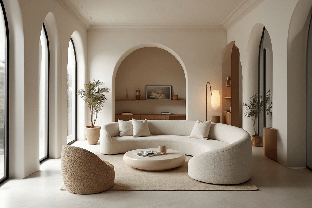 Een interieur hoeft niet volledig uit rond vormen te bestaan om zachtheid uit te stralen. Het draait om balans. Een rechte tafel met afgeronde hoeken, een ovale spiegel of een gebogen fauteuil kan al voldoende zijn om op een subtiele manier jouw ruimte wat zachter te doen aanvoelen. Door ronde elementen te combineren met neutrale kleuren en natuurlijk materialen, ontstaat een tijdloze elegantie: warm, maar niet druk. Zo krijgt elke ruimte karakter zonder rust te verliezen.